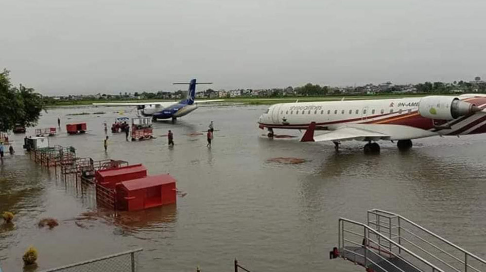 विमानस्थलमा बाढी पसेपछि विराटनगर विमानस्थल बन्द