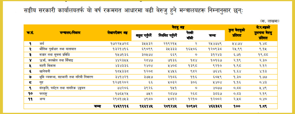 अर्थ मन्त्रालयकै बेरुजु सबैभन्दा बढी, कुन मन्त्रालयको कति ?