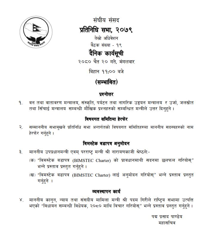 प्रतिनिधि सभा बैठक बस्दै, यस्तो छ सम्भावित कार्यसूची
