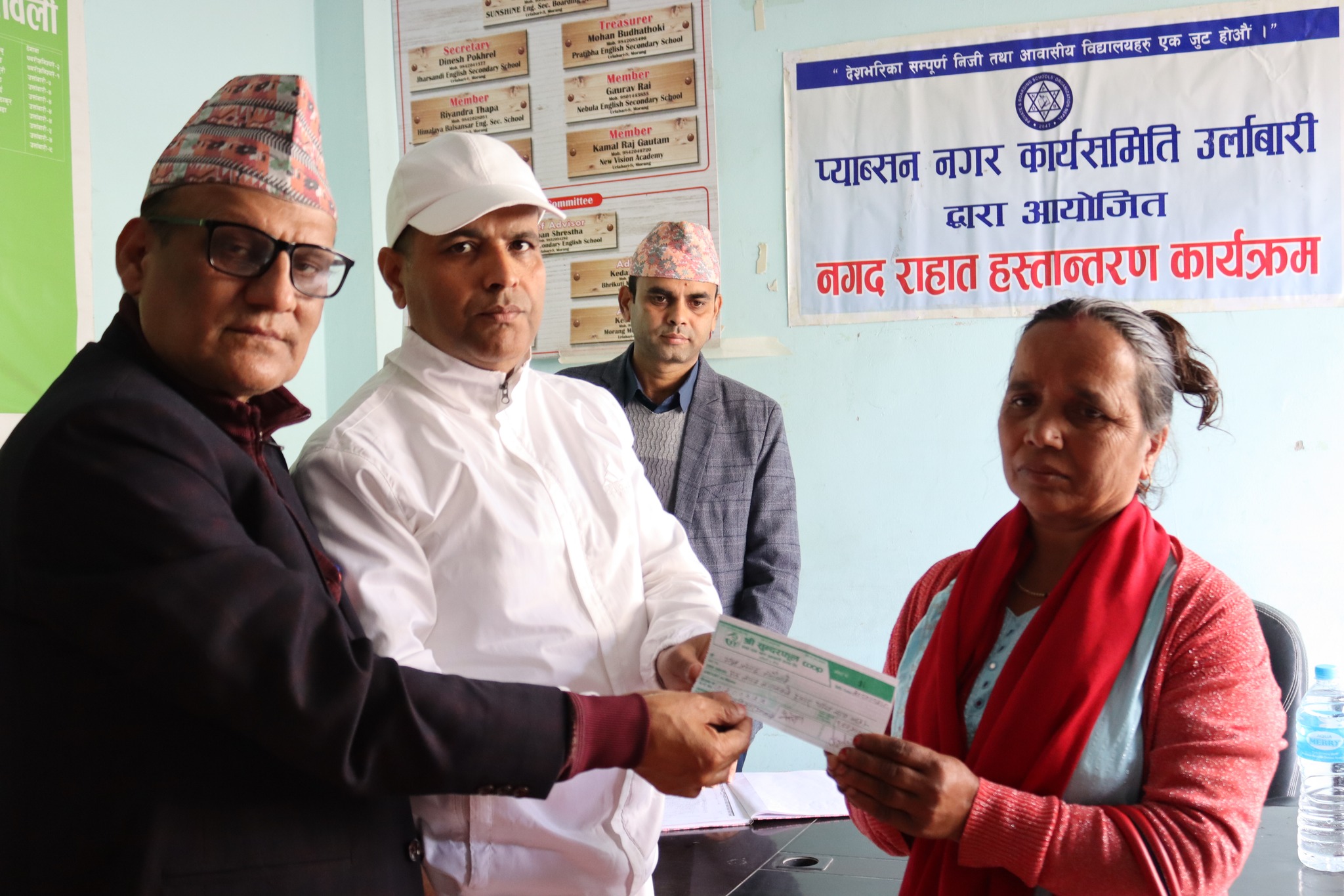 व्लड क्यान्सर पीडित शिक्षक न्यौपानेलाई प्याव्सन उर्लाबारीद्वारा ३ लाख १५ हजार सहयोग
