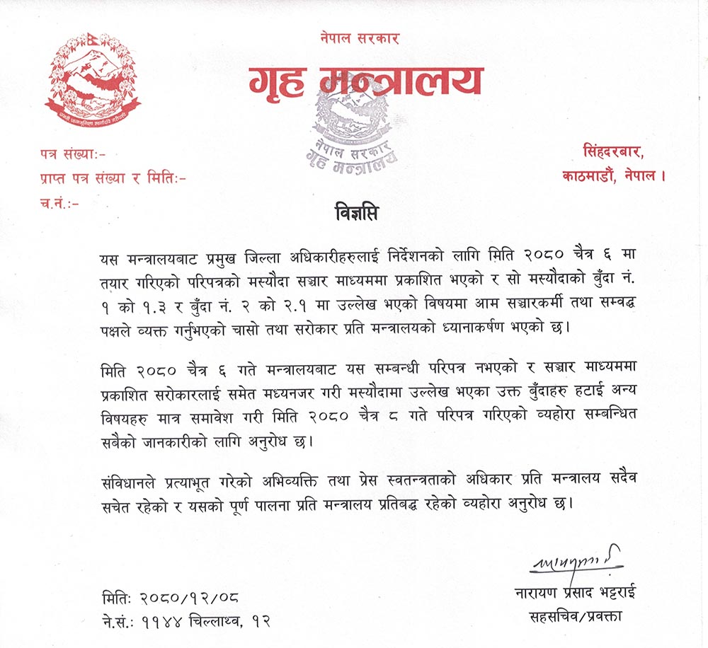अनलाइन मिडिया नियन्त्रण गर्ने निर्णयबाट पछि हट्यो गृह मन्त्रालय
