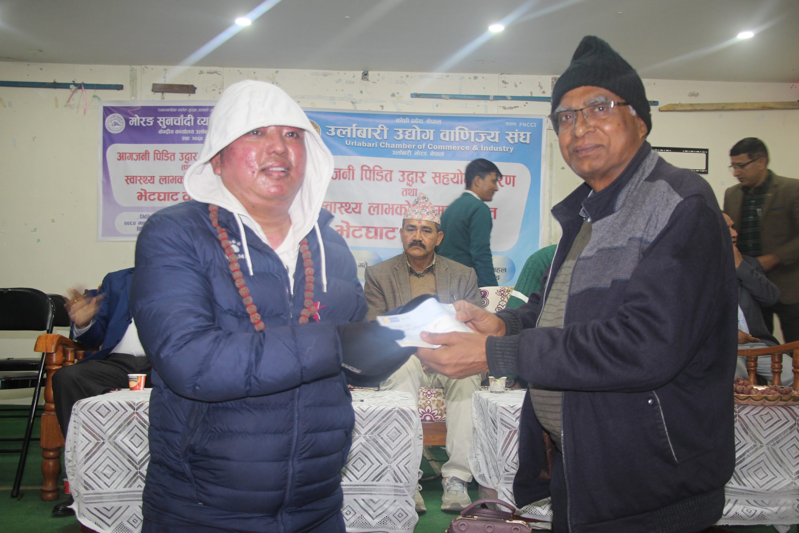 उर्लाबारी उद्योग वाणिज्य संघद्वारा आगलागी पीडित परिवारलाई सहयोग