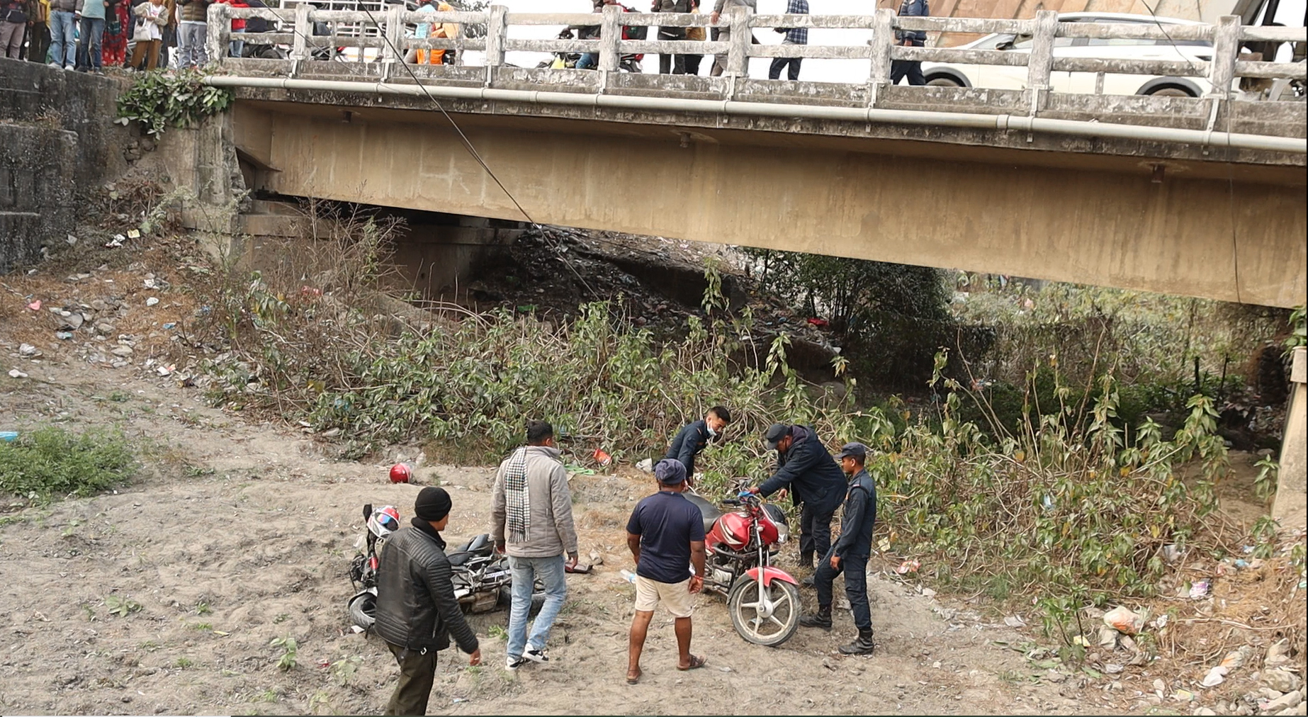 दुई मोटरसाइकल ठोकिएर पुलमुनी खस्दा ४ जना घाइते, ३ जना डिस्चार्ज