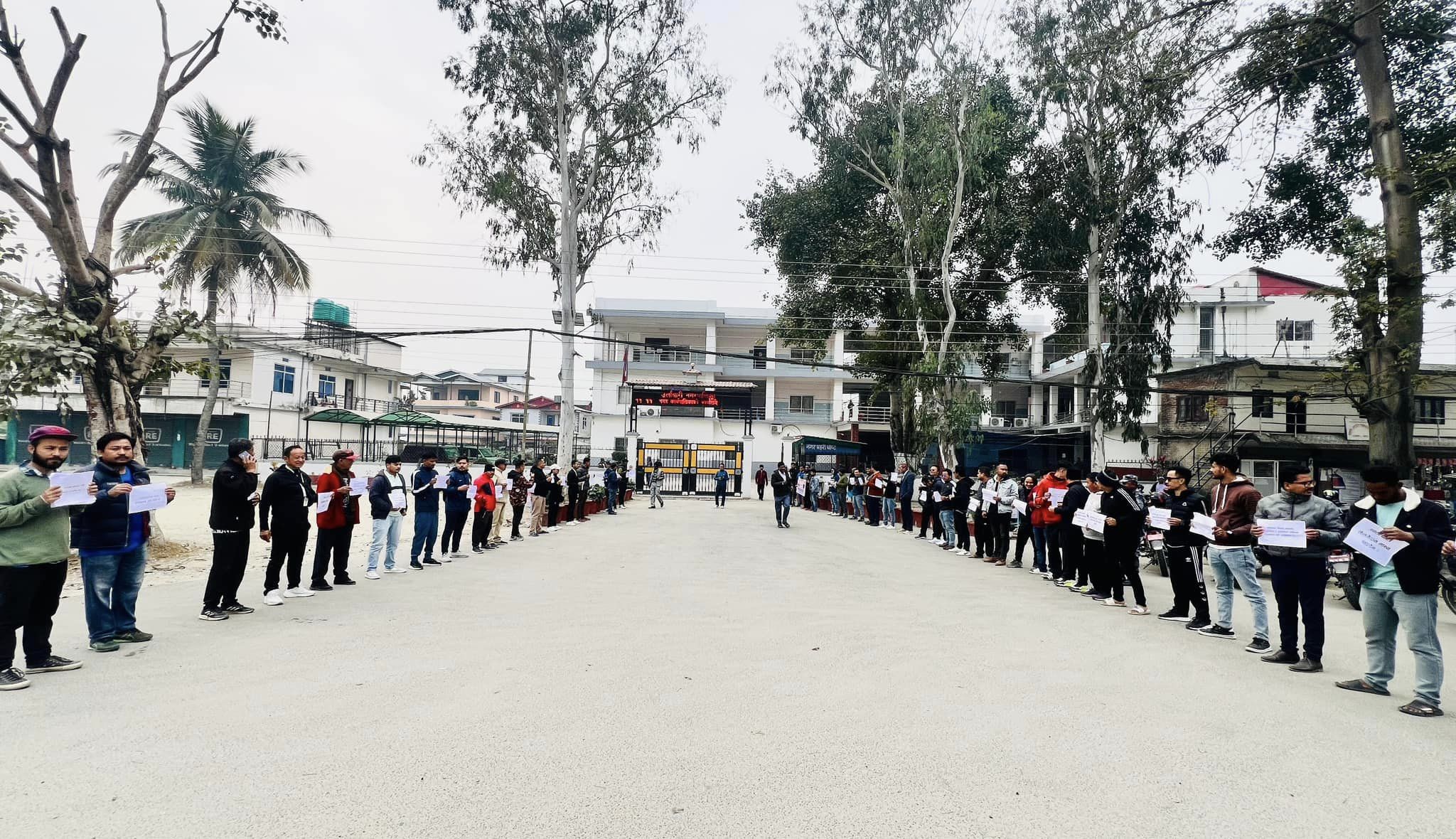 खेलमैदान माग्दै उर्लाबारी नगरपालिकामा धर्ना