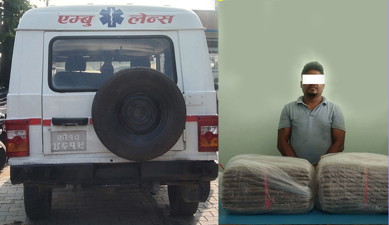 गाँजा बोकेको एम्बुलेन्ससहित चालकलाई प्रहरीले पक्राउ