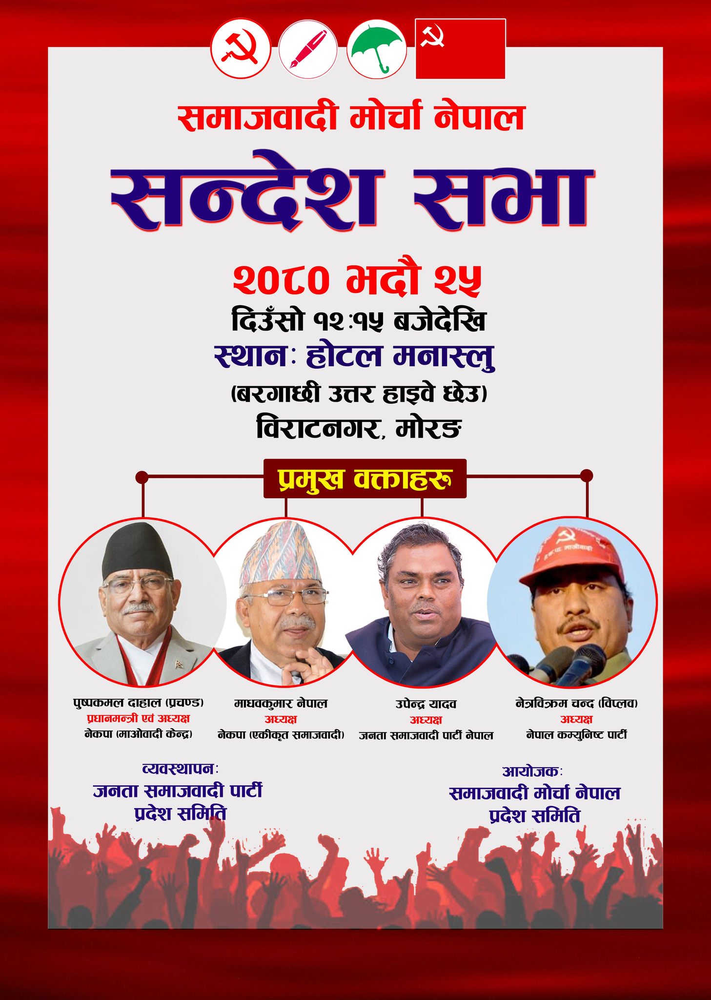 आज समाजवादी मोर्चाको सन्देश सभा विराटनगरमा