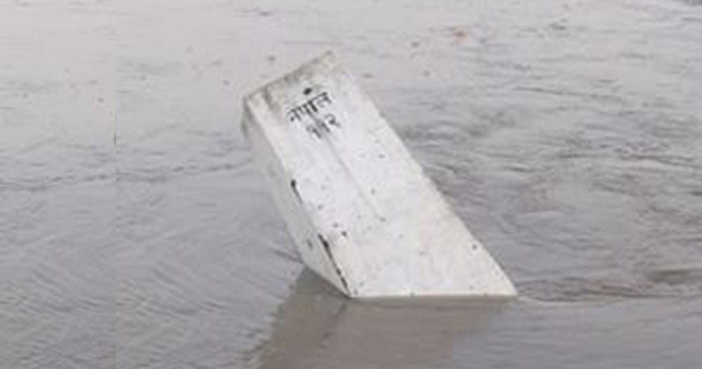 झापाको गौरीगञ्ज गाउँपालिका–२ स्थित दशगजामा रहेको सीमा स्तम्भ बाढीले बगायो