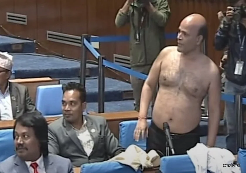 स्वतन्त्र सांसद अमरेशकुमार सिंहले सोमबारको संसद बैठकमै आफूले लगाएका लुगा खोले