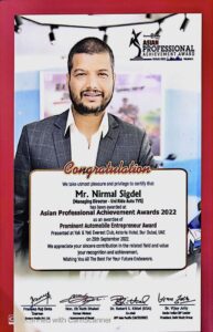 काठमाडौं । एसियन प्रोफेसनल एचिभमेन्ट अवार्ड २०२२ अन्तर्गत युनी राइड अटो टिभीएसका प्रबन्ध निर्देशक निर्मल सिग्देल सम्मानित हुनुभएको छ । उहाँ प्रोमिनेन्ट अटोमोबाइल इन्टरप्रेनयर अवार्डबाट सम्मानित हुनुभएको हो ।