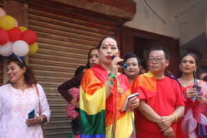 उर्लाबारी । झापाको दमकमा यौनिक तथा लैङ्गिक अल्पसंख्यक समुदायले तेस्रोलिङ्गी तथा पारलिङ्गी व्यक्ति र विविध लैङ्गिक प्रस्तुति भएका व्यक्तिले भेला भएर आफ्नो लैङ्गिक पहिचान प्रस्तुत गरी गाईजात्रा मनाएका छन् ।